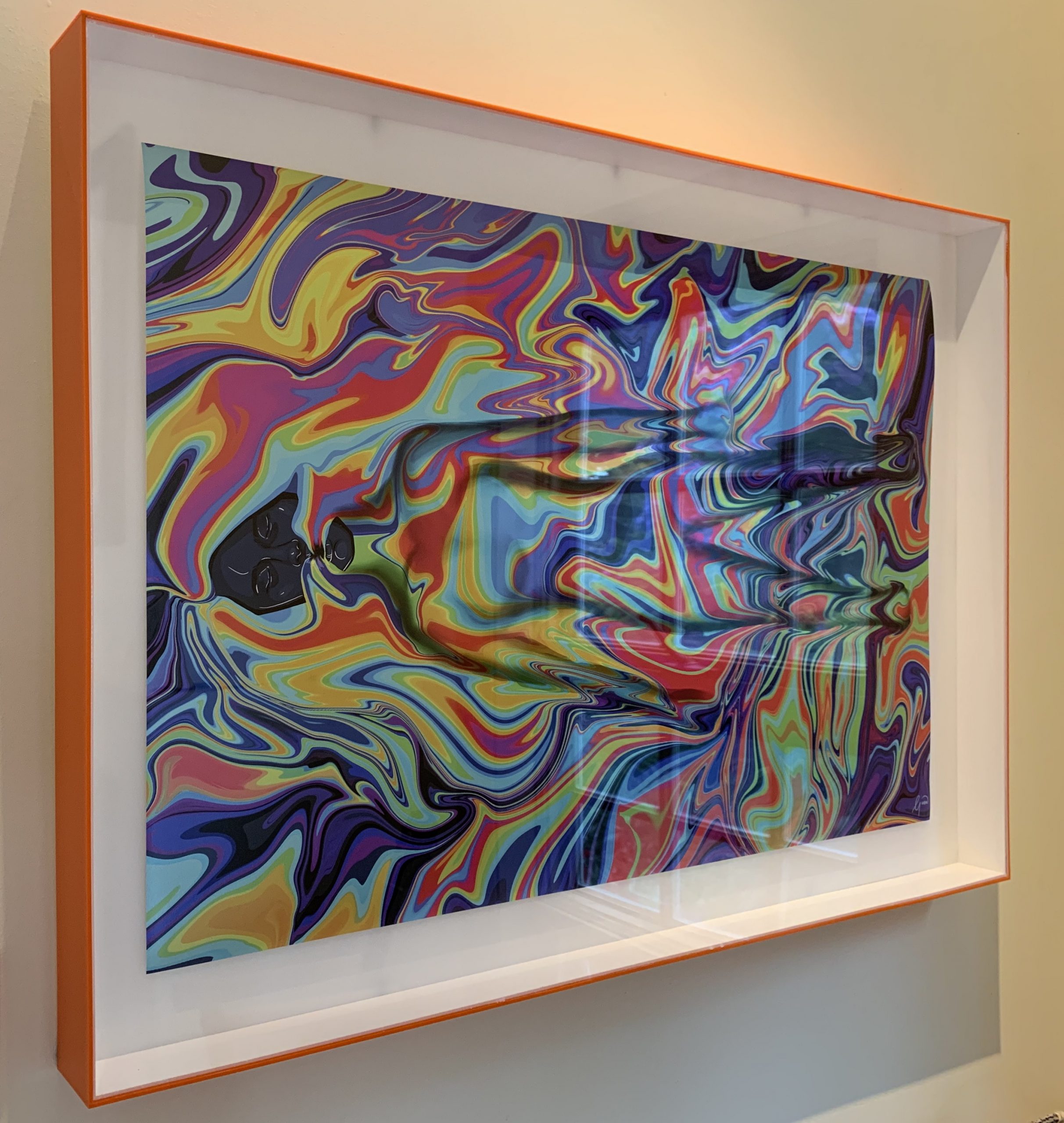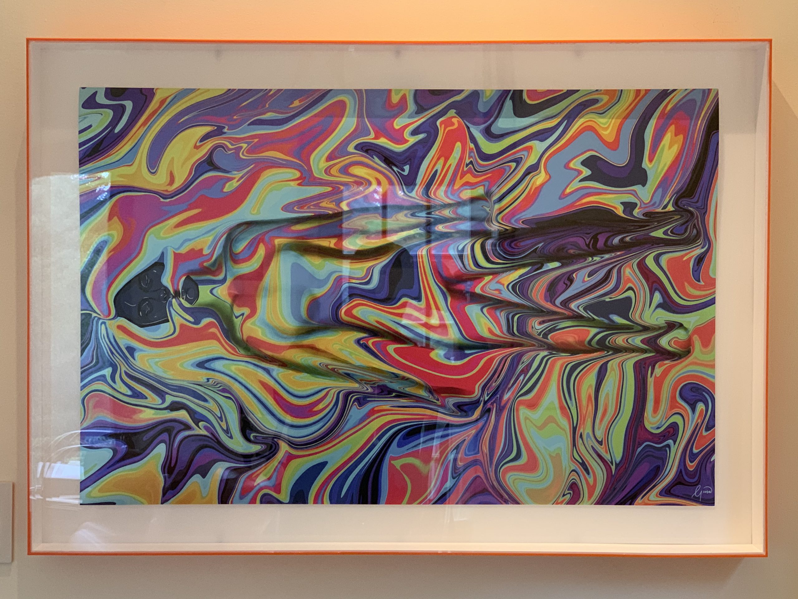 Medium: Digital painting (Apple Pencil on iPad Pro with Procreate graphic software) printed as an archival Lexjet giclée (pigment inkjet) on borderless archival Hahnemühle Photo Rag Metallic paper. The iridescent appearance of this artwork on this hyper-metallic paper, which can’t be appreciated online, evokes the rainbow colors of spilled oil.